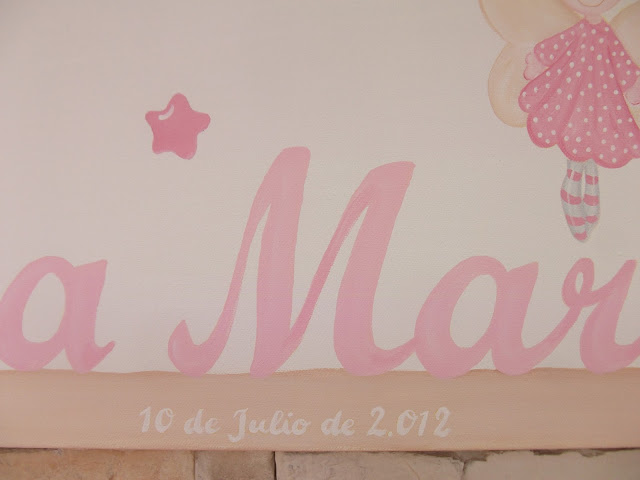 Cuadro para Eva María con Hada Princesa y estrellitas,. Lleva la fecha de nacimiento.  Muy coqueto. .!!!Quedará encantada con este regalo.